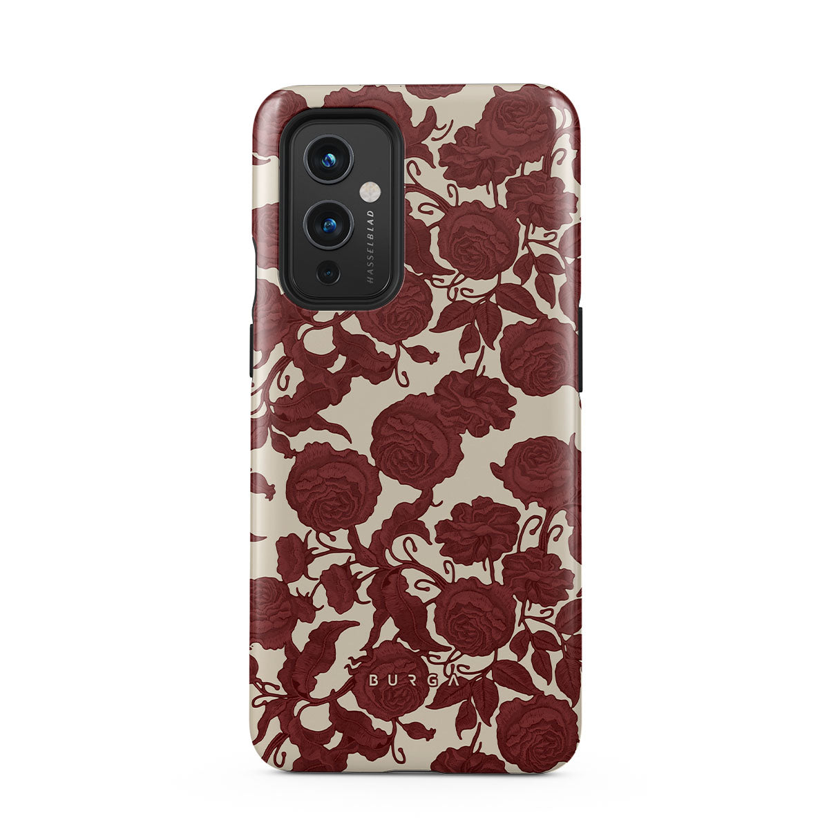 Este design contém: rosas vermelhas escuras, padrão floral intrincado, padrão vintage.