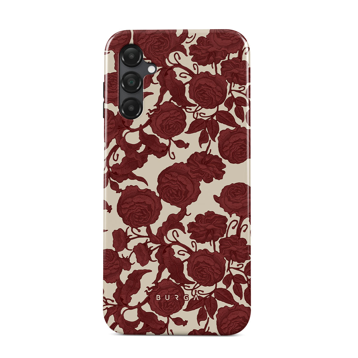 Este design contém: rosas vermelhas escuras, padrão floral intrincado, padrão vintage.