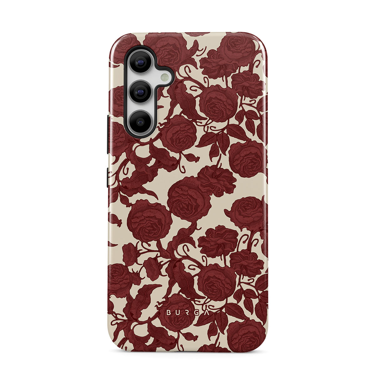 Este design contém: rosas vermelhas escuras, padrão floral intrincado, padrão vintage.