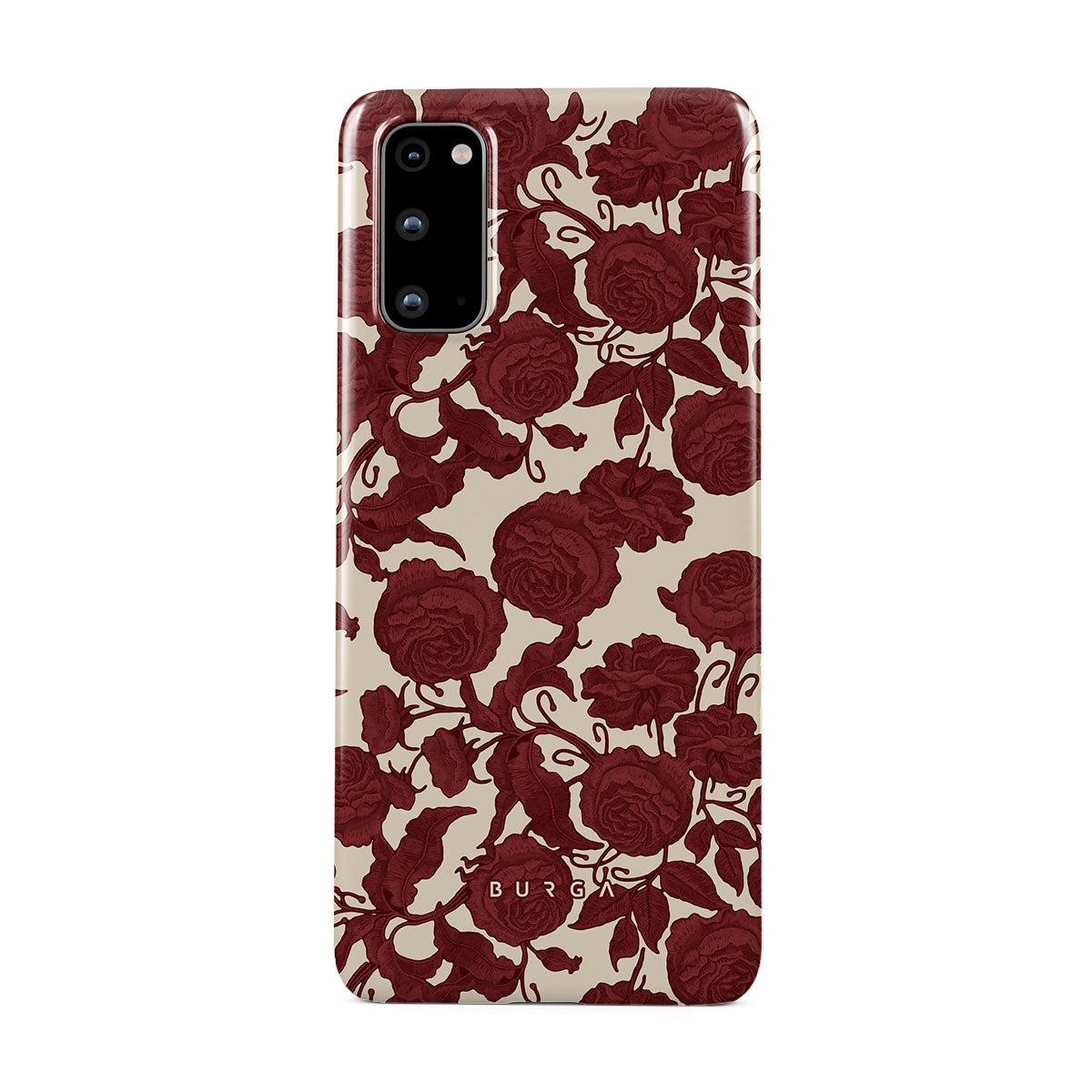 Este design contém: rosas vermelhas escuras, padrão floral intrincado, padrão vintage.