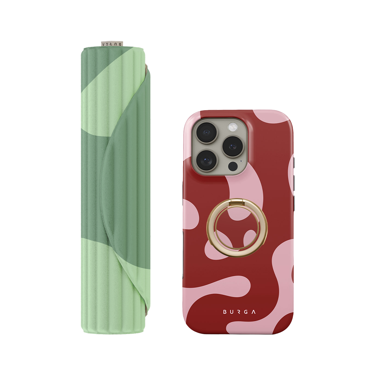 O trio que não falha: a capa protege o teu telemóvel. O tapete mantém-te focada. O suporte em anel aguenta o ecrã, até com as mãos suadas.