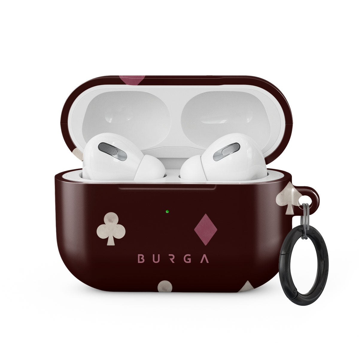 Este design contém: naipes de cartas, corações, espadas, ouros, paus, fundo bordô