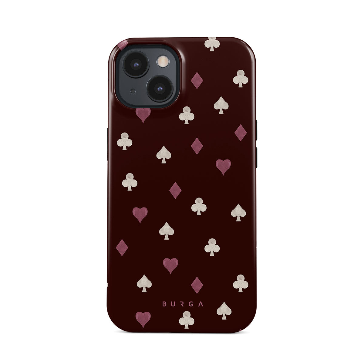 Este design contém: naipes de cartas, corações, espadas, ouros, paus, fundo bordô