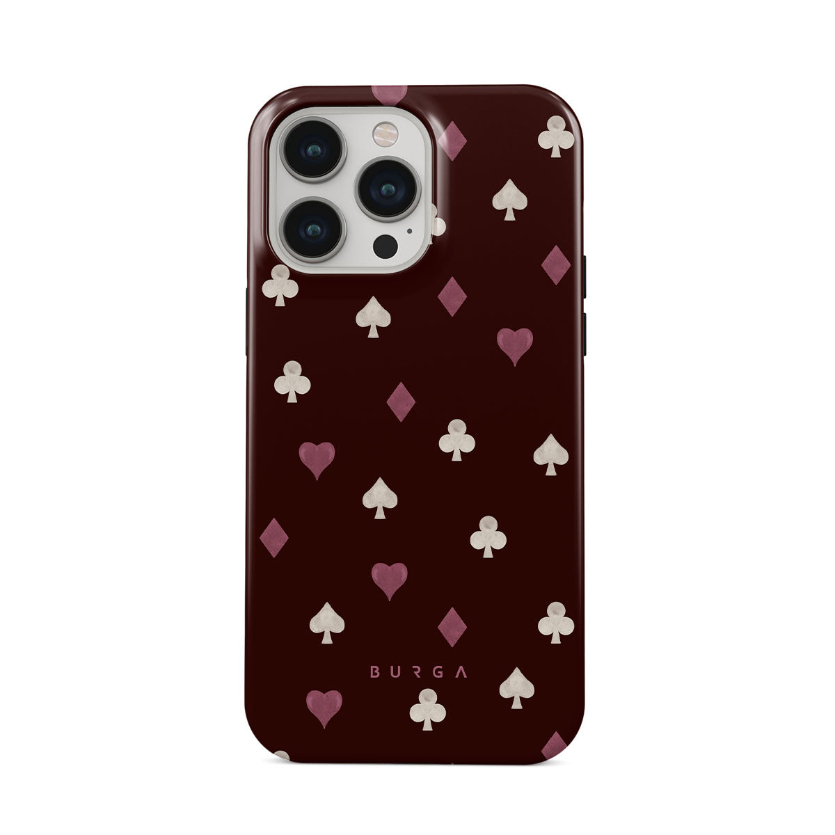 Este design contém: naipes de cartas, corações, espadas, ouros, paus, fundo bordô