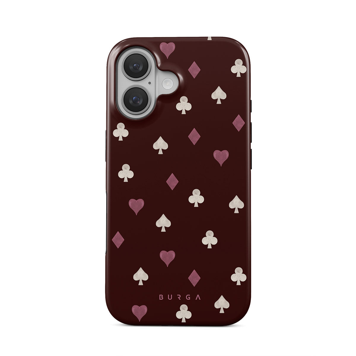 Este design contém: naipes de cartas, corações, espadas, ouros, paus, fundo bordô