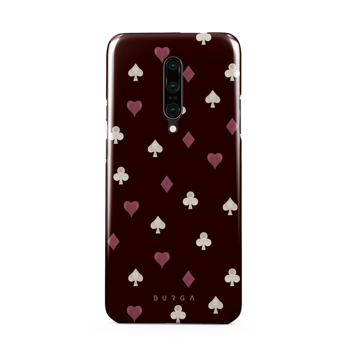 Este design contém: naipes de cartas, corações, espadas, ouros, paus, fundo bordô