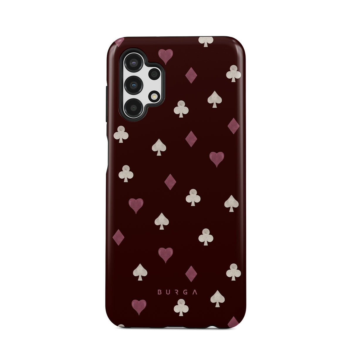 Este design contém: naipes de cartas, corações, espadas, ouros, paus, fundo bordô