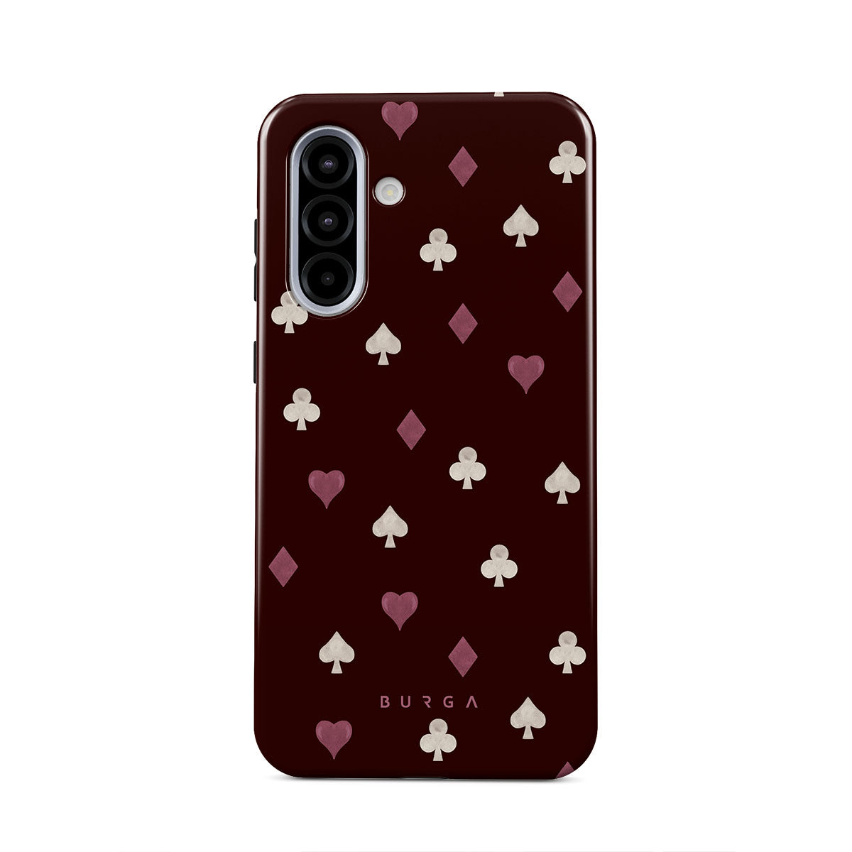 Este design contém: naipes de cartas, corações, espadas, ouros, paus, fundo bordô