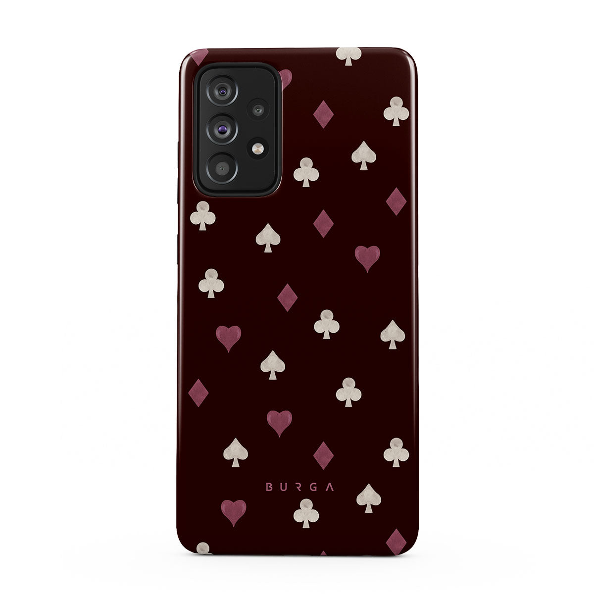Este design contém: naipes de cartas, corações, espadas, ouros, paus, fundo bordô