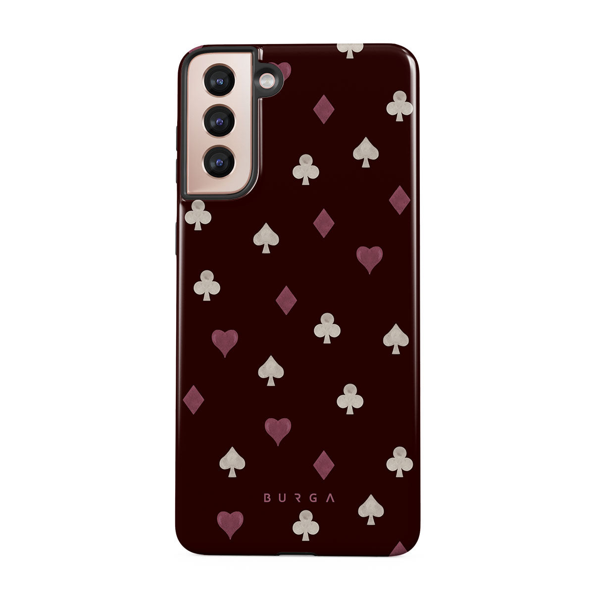 Este design contém: naipes de cartas, corações, espadas, ouros, paus, fundo bordô