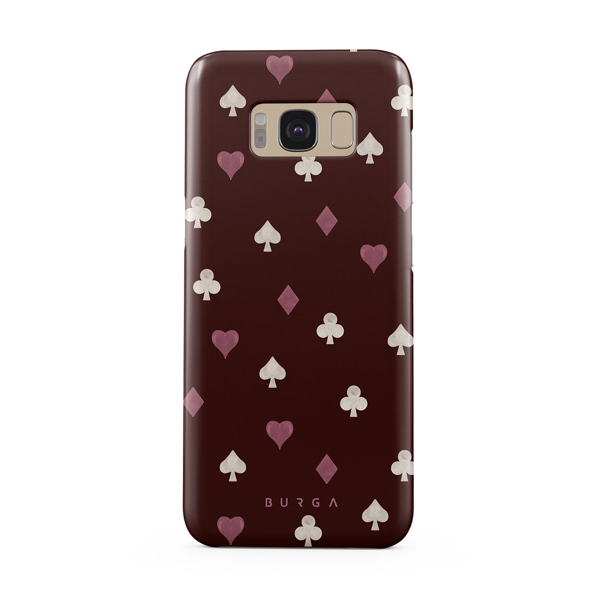 Este design contém: naipes de cartas, corações, espadas, ouros, paus, fundo bordô