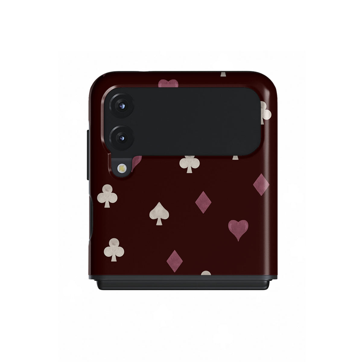 Este design contém: naipes de cartas, corações, espadas, ouros, paus, fundo bordô