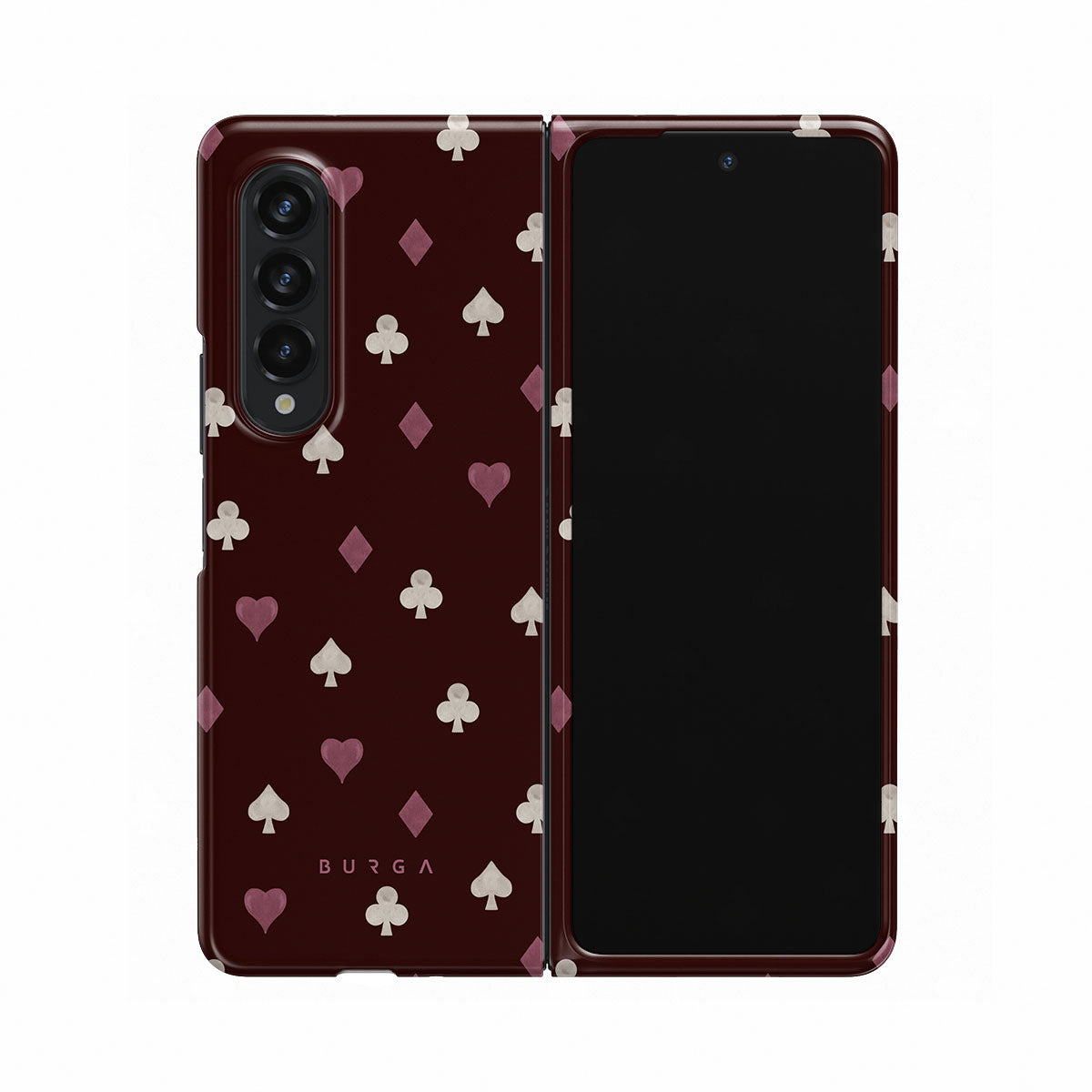 Este design contém: naipes de cartas, corações, espadas, ouros, paus, fundo bordô