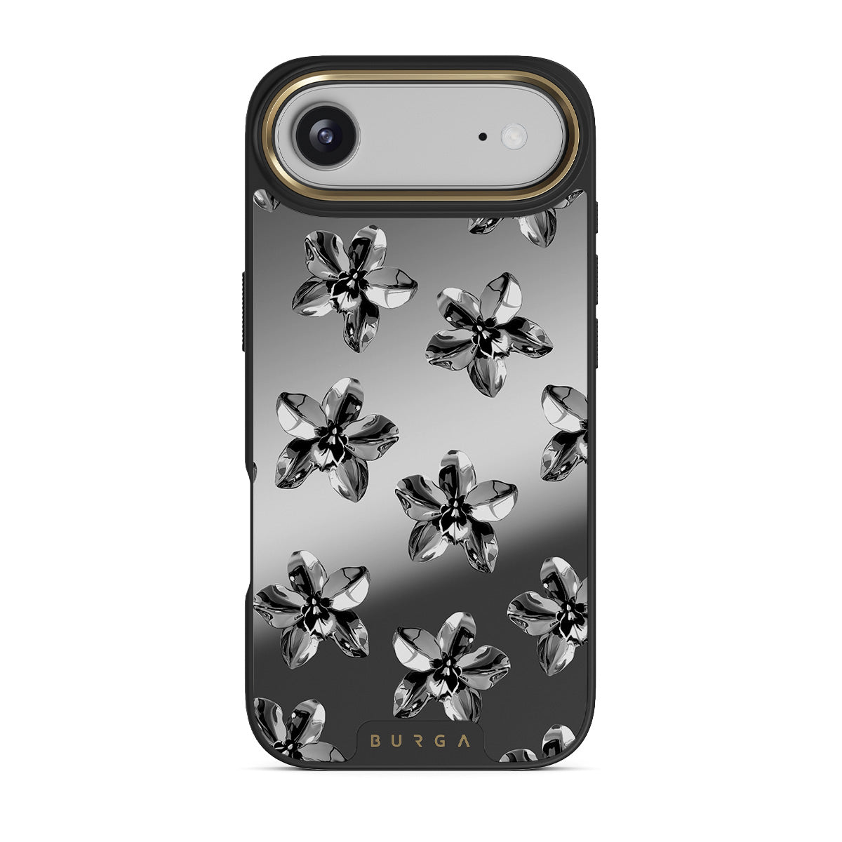 Este design contém: flores prateadas, detalhes metálicos, espelho