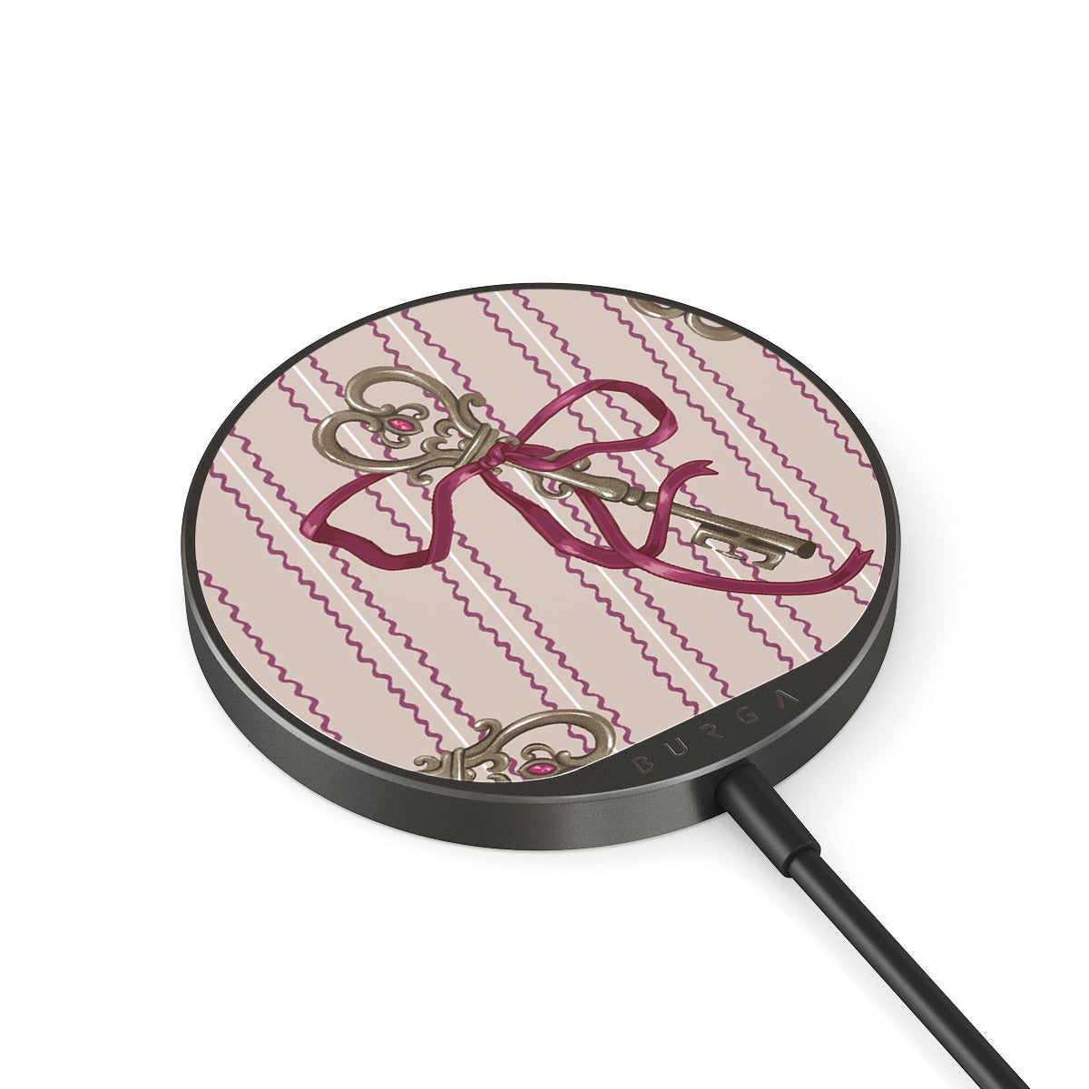 O cabo integrado de 1,5 m facilita o carregamento onde quer que esteja: no escritório, relaxando no sofá ou matando tempo no lounge do aeroporto. Além disso, a parte traseira em vidro BURGA oferece mais de 500 padrões para escolher, para que o teu carregador fique tão bonito quanto a tua capa.