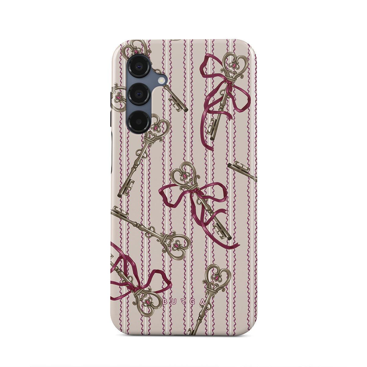 Este design contém: chaves antigas, laços, fitas cor-de-rosa, fundo às riscas