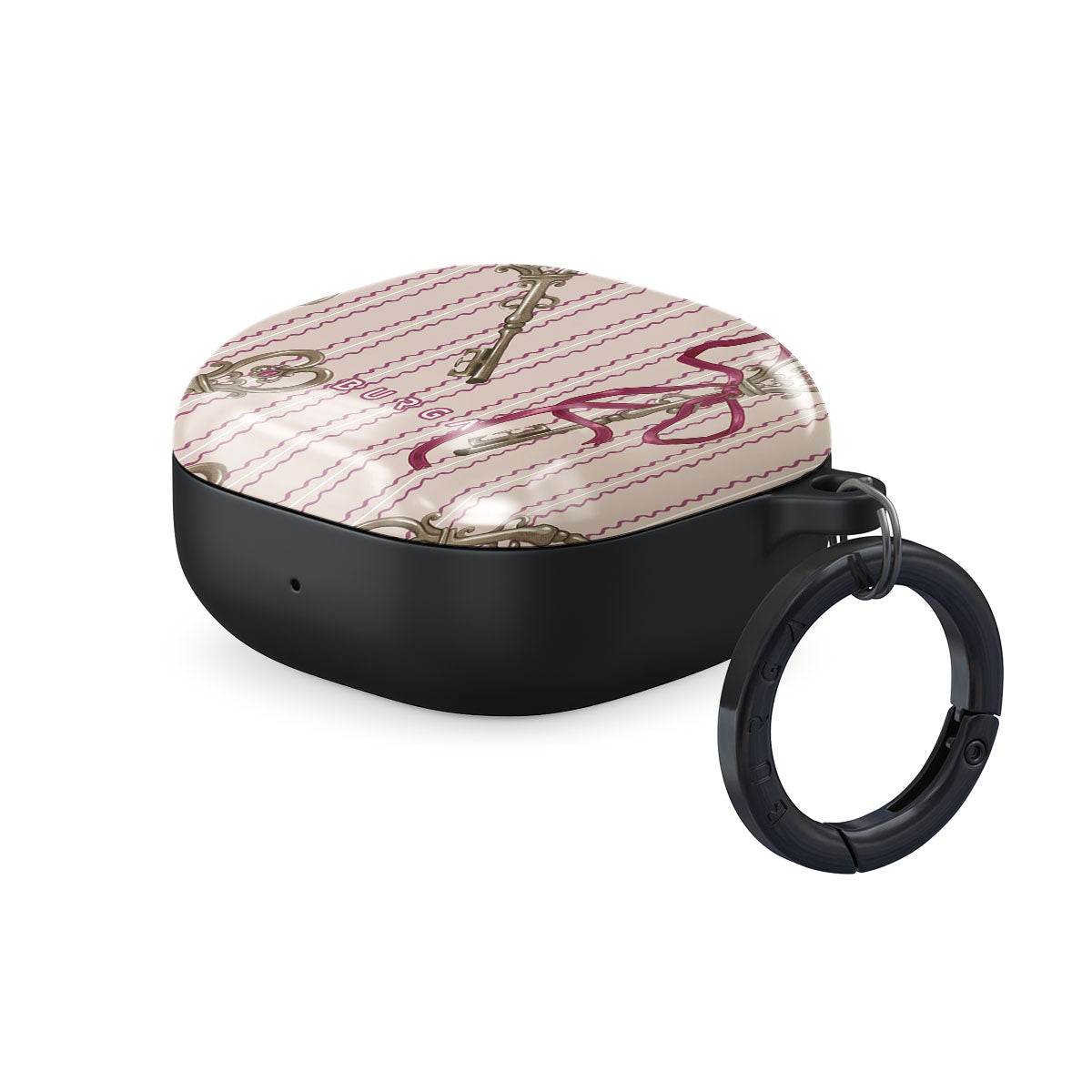 Este design contém: chaves antigas, laços, fitas cor-de-rosa, fundo às riscas