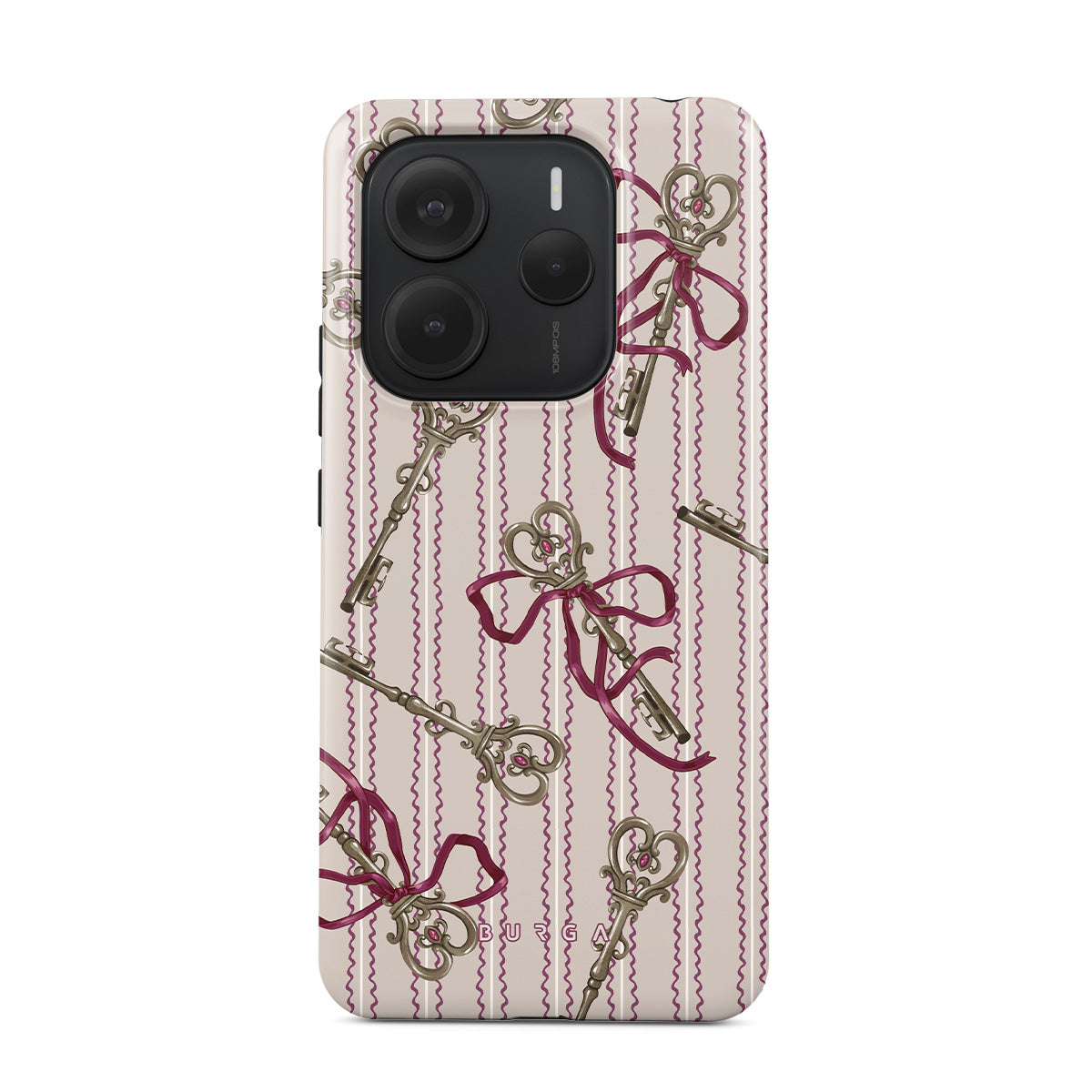 Este design contém: chaves antigas, laços, fitas cor-de-rosa, fundo às riscas