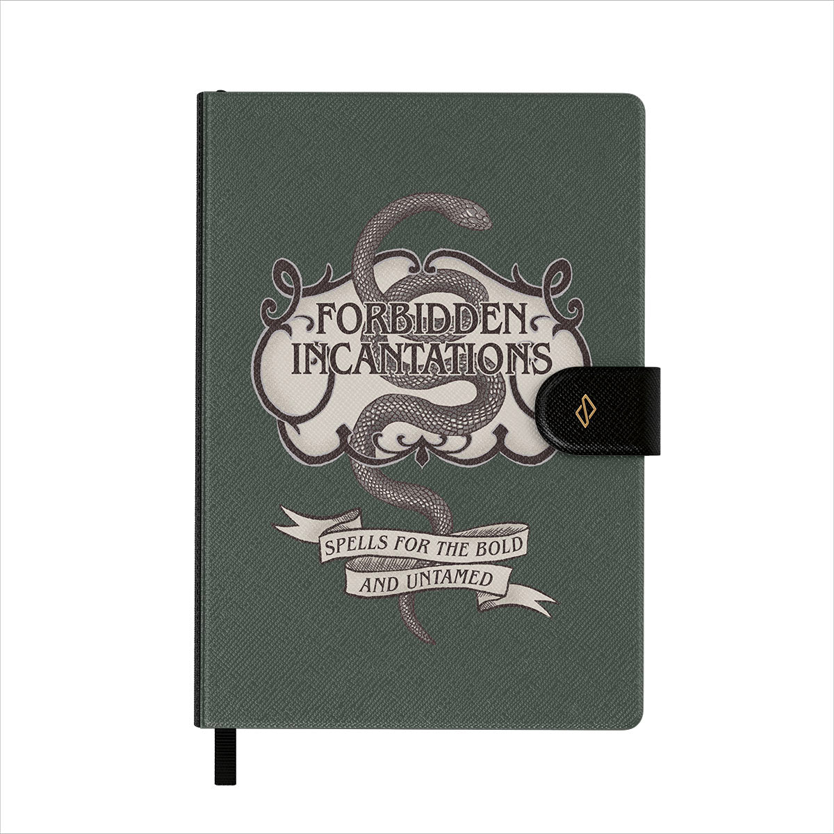 Apresenta padrões BURGA bem detalhados numa capa em pele sintética vegana, com um elegante marcador de páginas em fita preta.