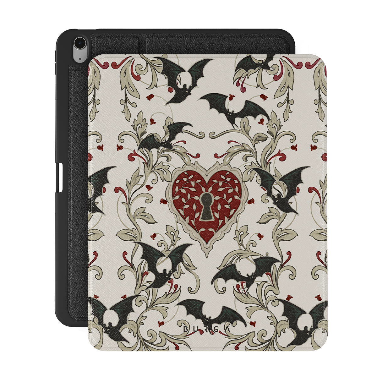 Este design contém: coração, cadeado, morcegos, motivos góticos