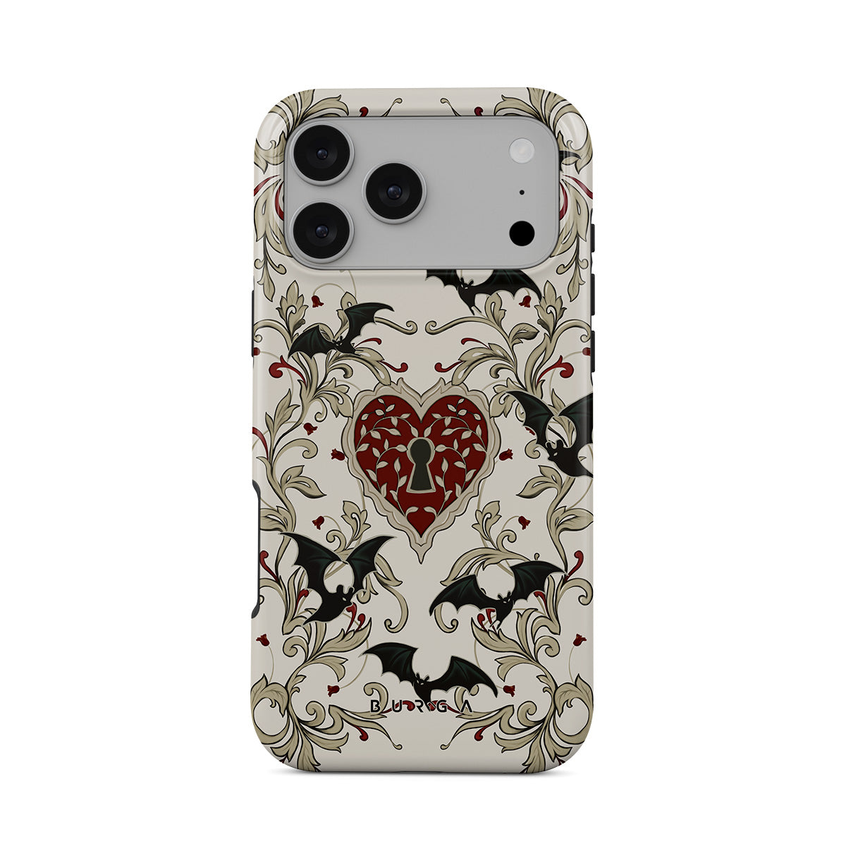 Este design contém: coração, cadeado, morcegos, motivos góticos