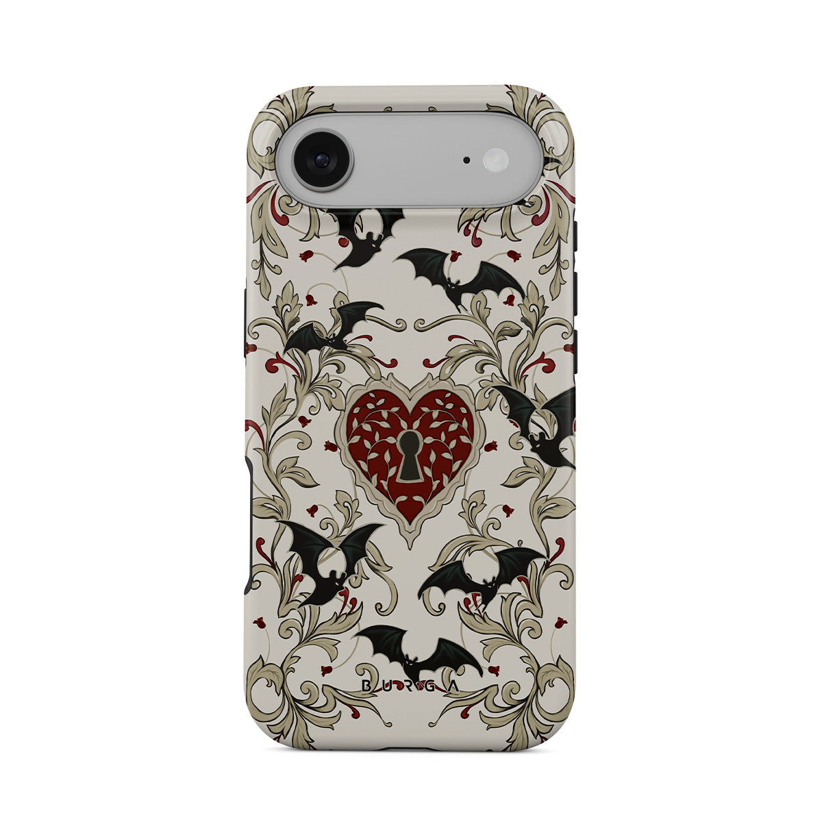 Este design contém: coração, cadeado, morcegos, motivos góticos