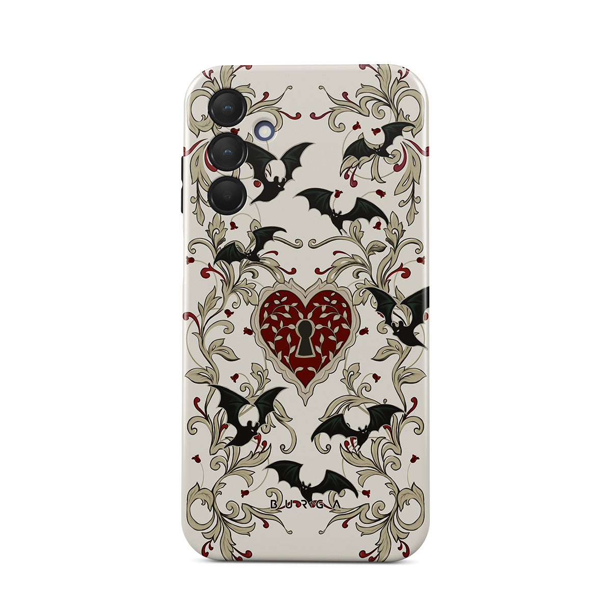 Este design contém: coração, cadeado, morcegos, motivos góticos