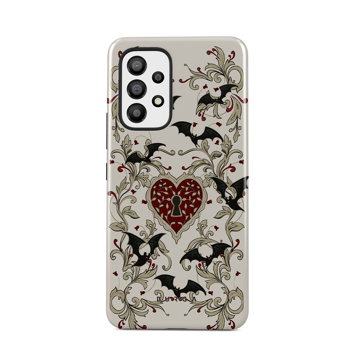 Este design contém: coração, cadeado, morcegos, motivos góticos