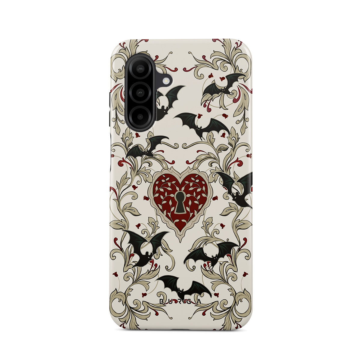 Este design contém: coração, cadeado, morcegos, motivos góticos