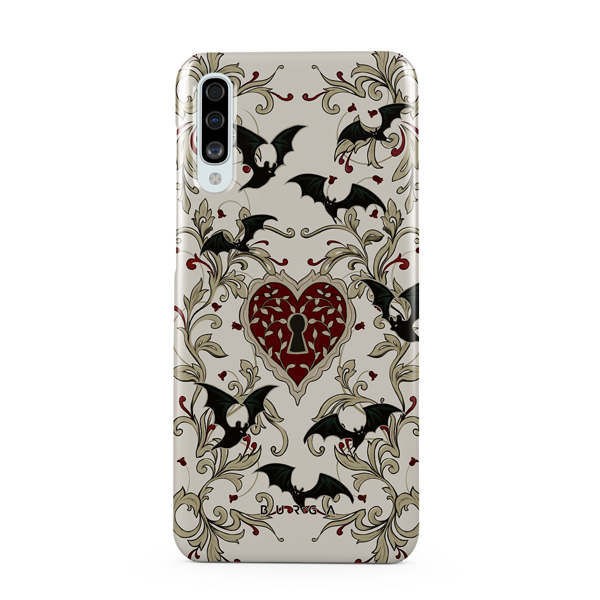 Este design contém: coração, cadeado, morcegos, motivos góticos