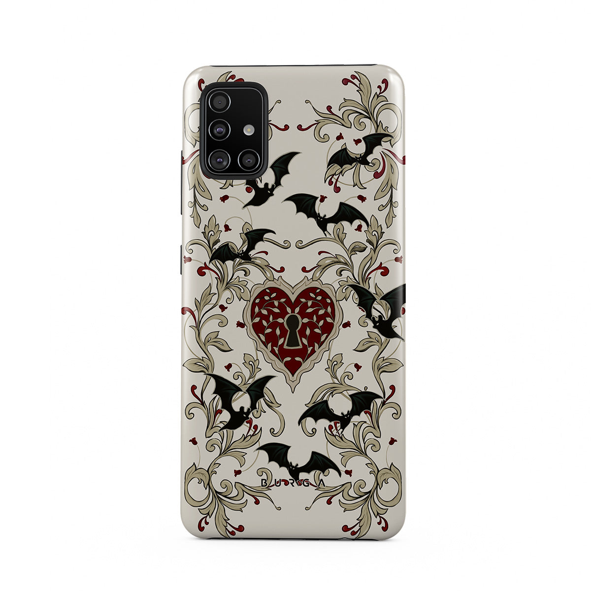 Este design contém: coração, cadeado, morcegos, motivos góticos