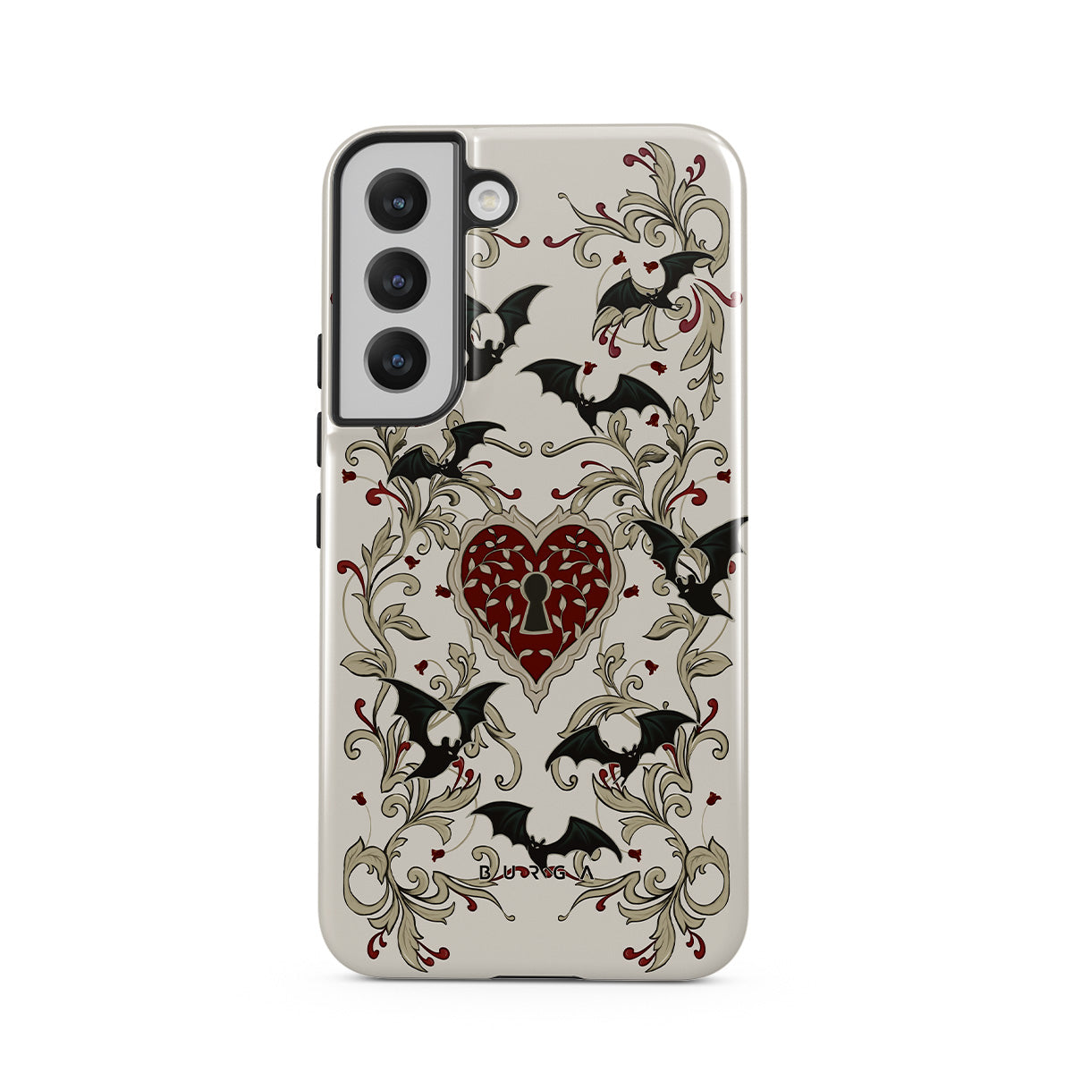 Este design contém: coração, cadeado, morcegos, motivos góticos