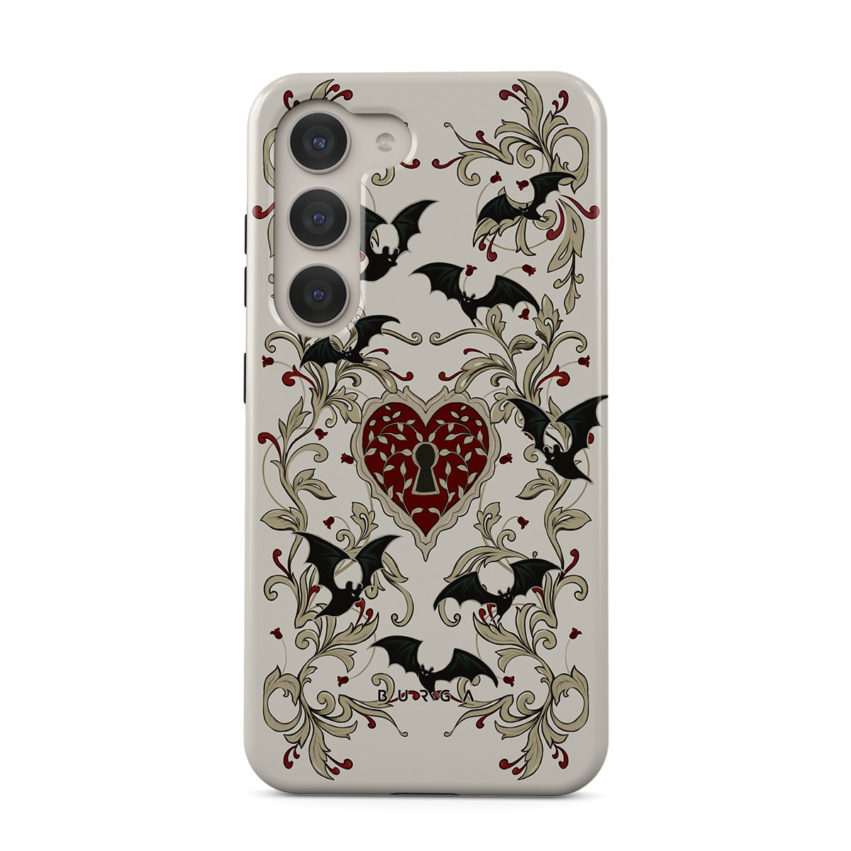 Este design contém: coração, cadeado, morcegos, motivos góticos