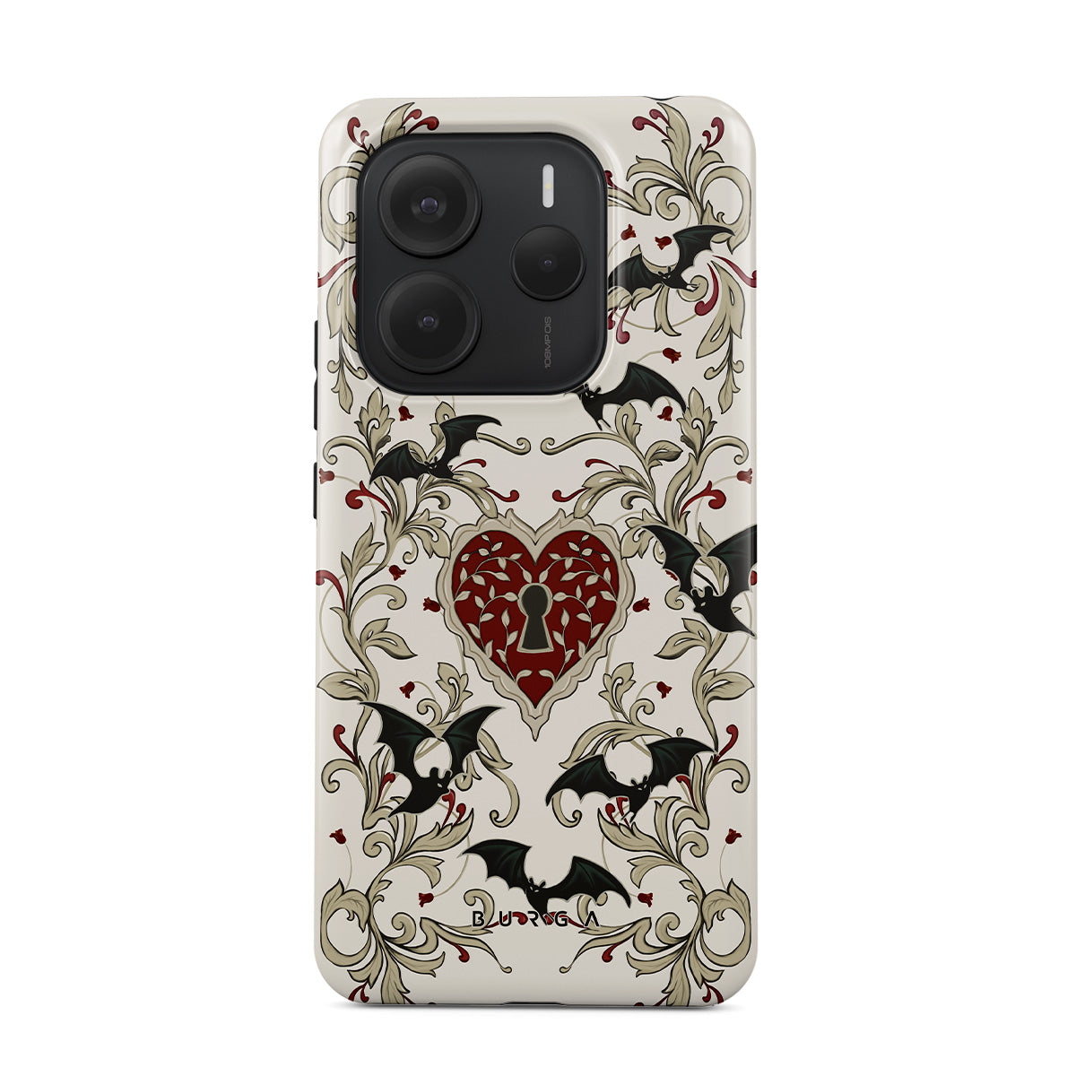 Este design contém: coração, cadeado, morcegos, motivos góticos