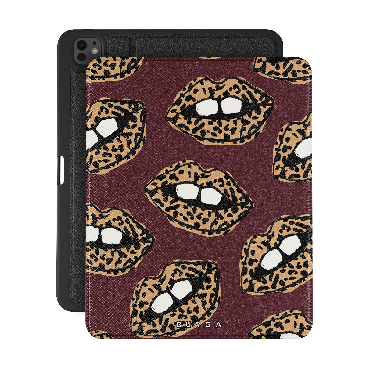 Este design contém: estampado de leopardo, lábios, lábios abertos, lábios coloridos.