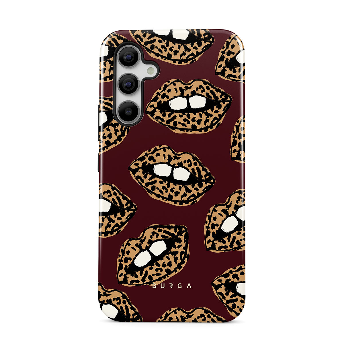 Este design contém: estampado de leopardo, lábios, lábios abertos, lábios coloridos.