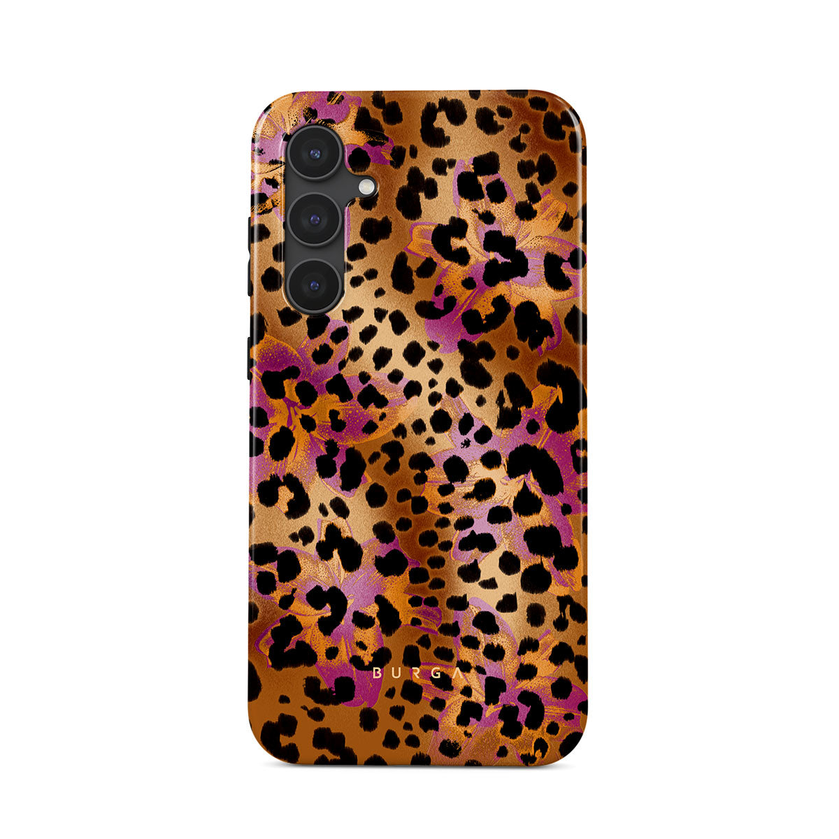 Este design contém: estampa de leopardo, marrom, laranja, roxo, estampa de animal.