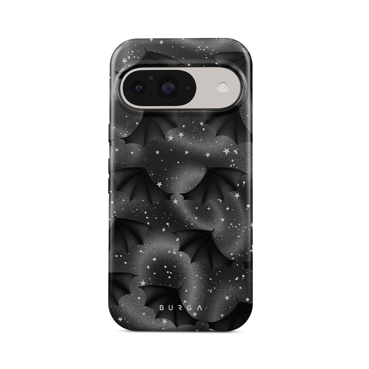 Este design contém: asas de morcego, estrelas, redemoinhos místicos, céu negro