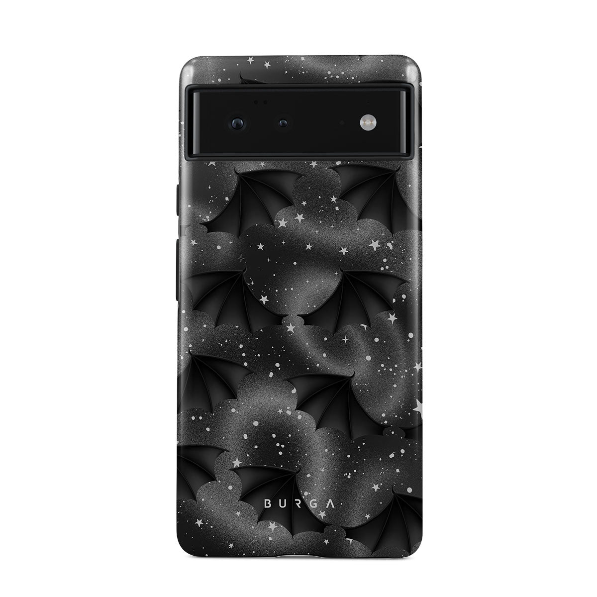 Este design contém: asas de morcego, estrelas, redemoinhos místicos, céu negro