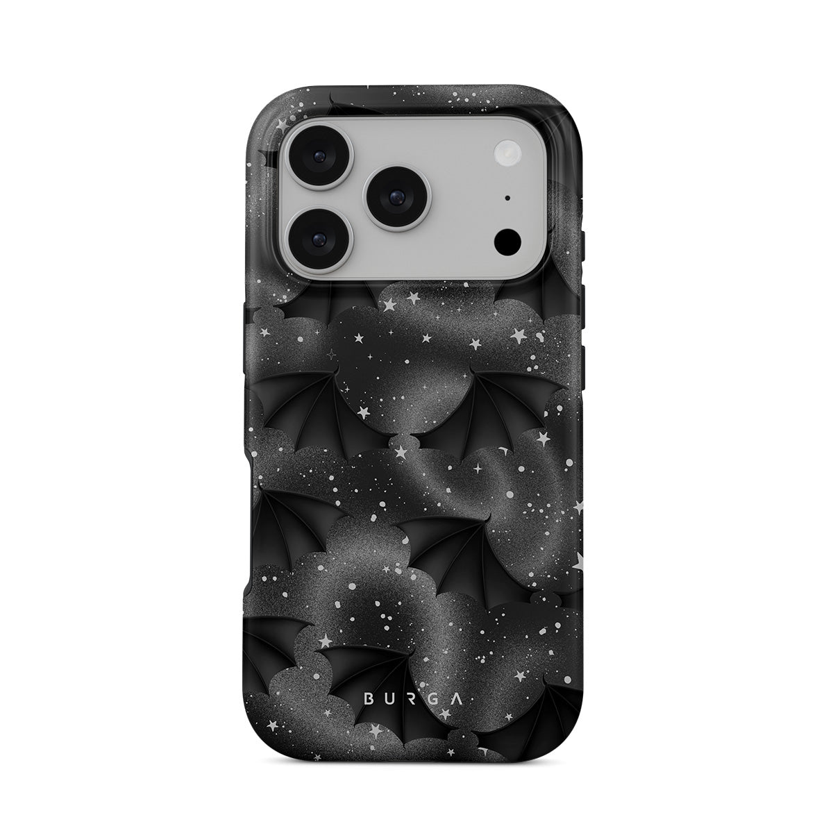 Este design contém: asas de morcego, estrelas, redemoinhos místicos, céu negro