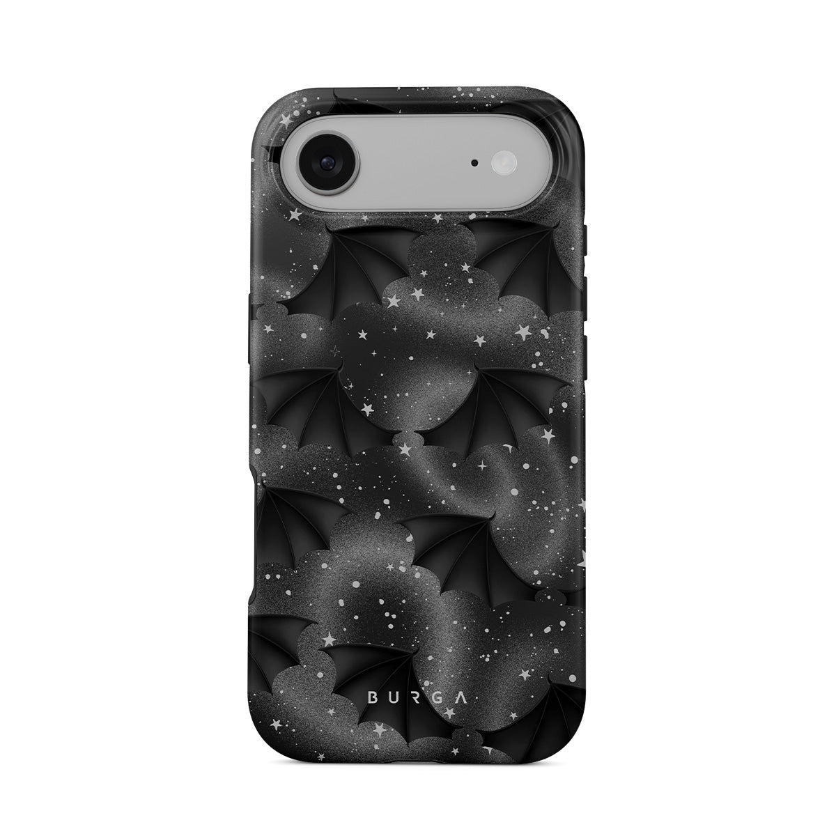 Este design contém: asas de morcego, estrelas, redemoinhos místicos, céu negro