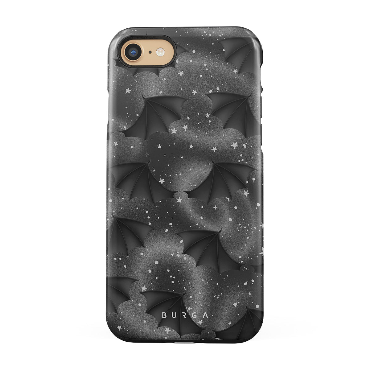 Este design contém: asas de morcego, estrelas, redemoinhos místicos, céu negro