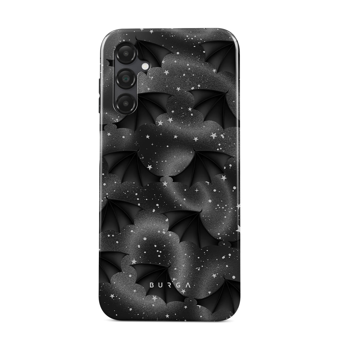 Este design contém: asas de morcego, estrelas, redemoinhos místicos, céu negro