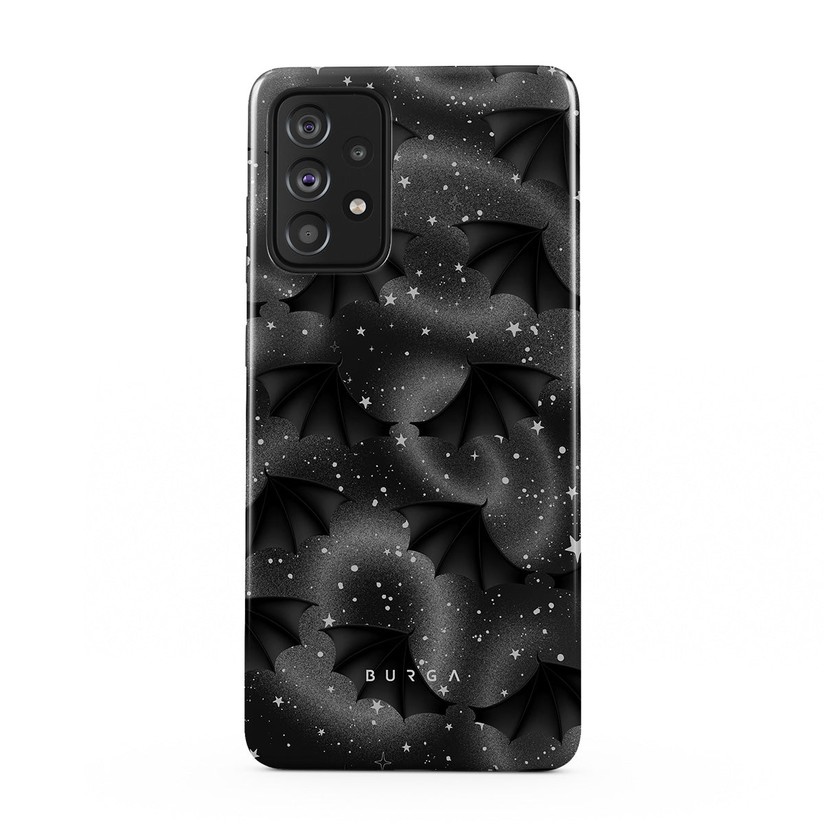 Este design contém: asas de morcego, estrelas, redemoinhos místicos, céu negro