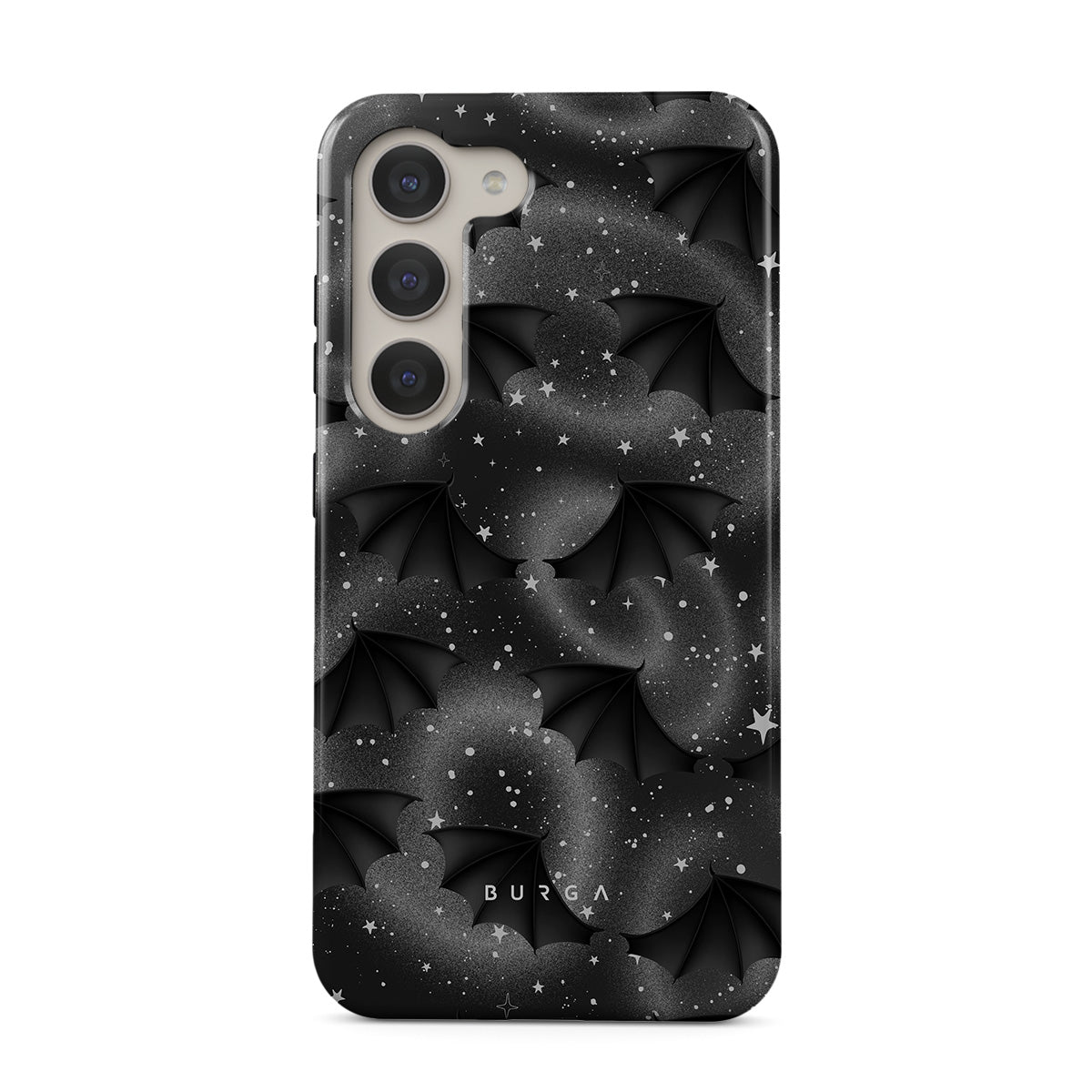 Este design contém: asas de morcego, estrelas, redemoinhos místicos, céu negro