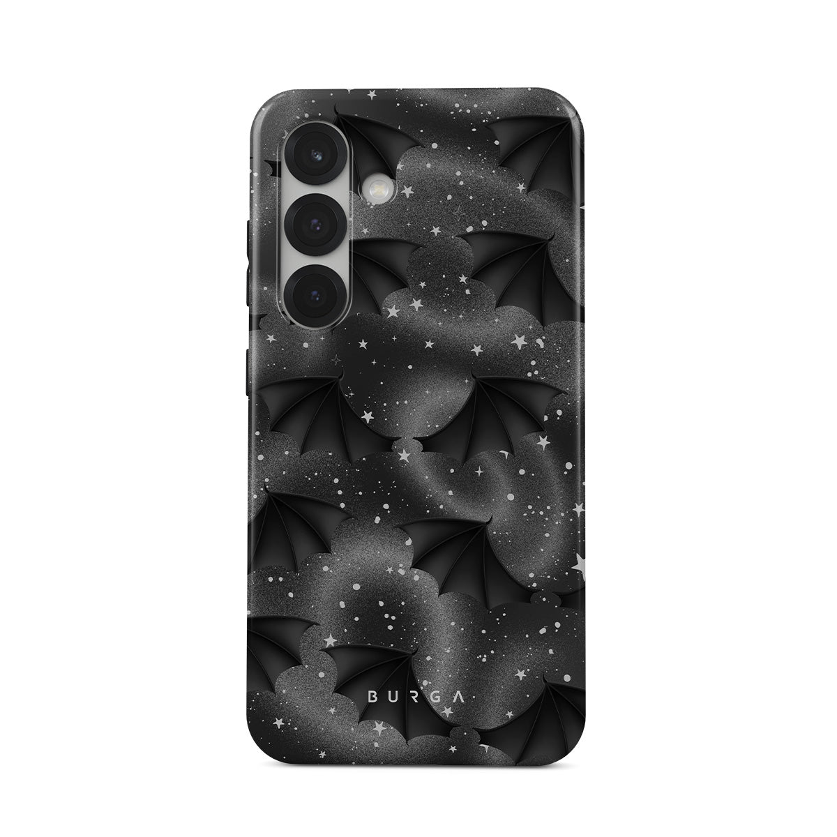 Este design contém: asas de morcego, estrelas, redemoinhos místicos, céu negro
