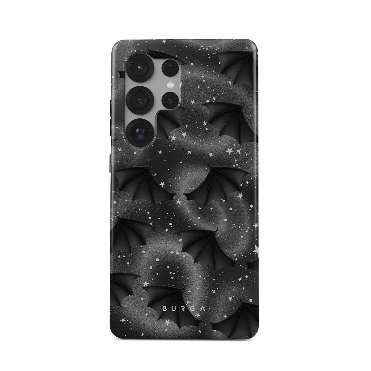Este design contém: asas de morcego, estrelas, redemoinhos místicos, céu negro