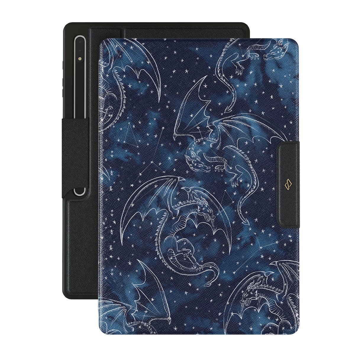 Este design contém: dragões, estrelas, constelações, céu azul escuro