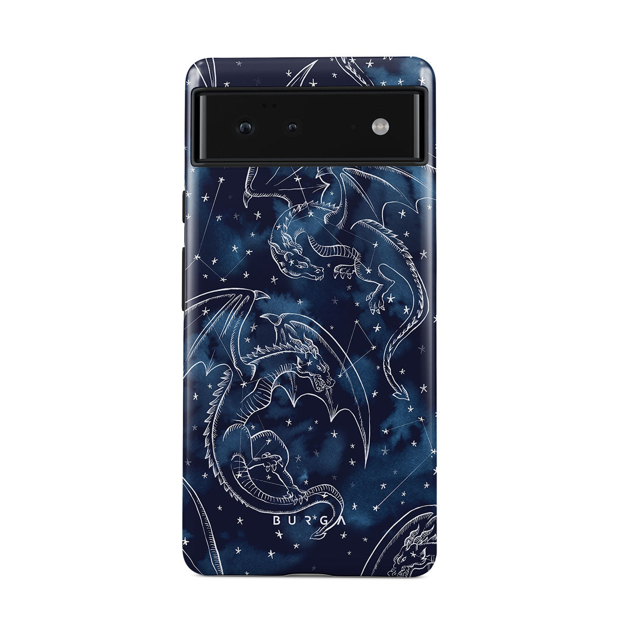 Este design contém: dragões, estrelas, constelações, céu azul escuro