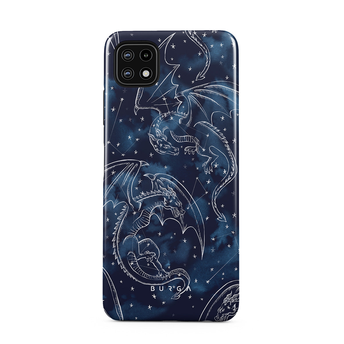 Este design contém: dragões, estrelas, constelações, céu azul escuro